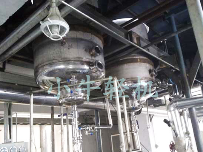 中央循環(huán)結(jié)晶器的蒸發(fā)室是加熱室上部的圓筒體,溶液經(jīng)加熱后汽化,必須具備一定高度和空間,使汽液進(jìn)行分離,二次蒸汽上升,溶液經(jīng)中央循環(huán)管下降,這樣保證溶液不斷循環(huán)和濃縮。蒸發(fā)室的高度,主要根據(jù)防止料液被二次蒸汽夾帶的上升速度所決定,同時(shí)考慮清洗、維修加熱管的需要,一般為加熱管長度的1.1~1.5倍。蒸發(fā)室設(shè)有視鏡、人孔、洗水、照明、儀表、取樣等裝置,頂部有捕集器裝置,主要使二次蒸汽可能夾帶的汁液進(jìn)行分離,保證二次蒸汽的潔凈,有利于提高次一效濃縮鍋的傳熱效果,也減少料液的損失,頂部與二次蒸汽排出管相連。